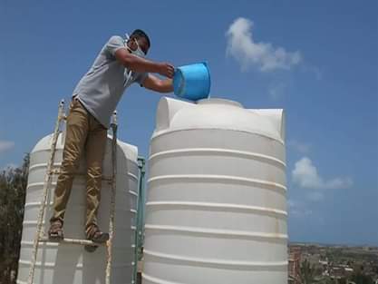 - يتم تعقيم الخزان و تطهيره بمادة معقمة .