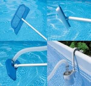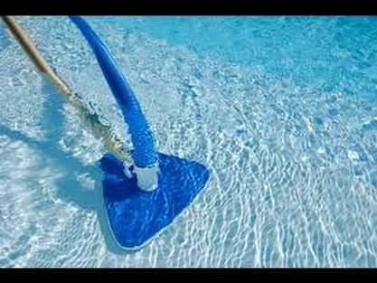 - ثم البدء بعملية نظافة قاع حمام السباحة .
